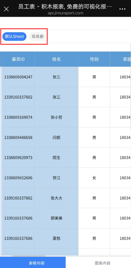- Sheet切换:在移动端打开多Sheet报表时,上方会显示Sheet切换标签