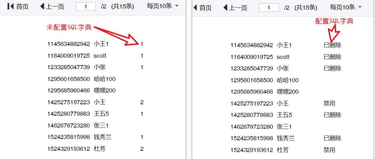 - 字典应用后,单元格中的原始值会自动转换为字典配置的显示文本