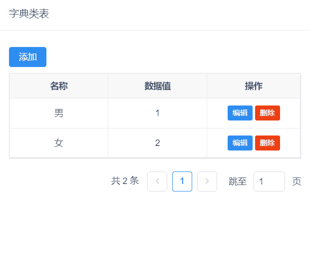 | 字典编码 | 字典的唯一标识,建议使用英文或拼音 | sex、order_status |