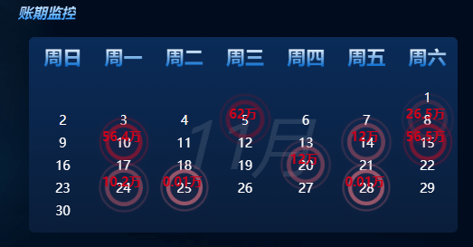 通过日历展示数据,目前只可展示当前月