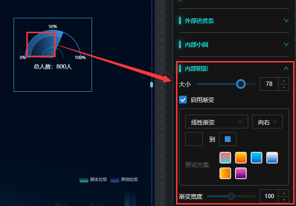 - 设置仪表盘结束角度,支持通过滑块或输入框调整