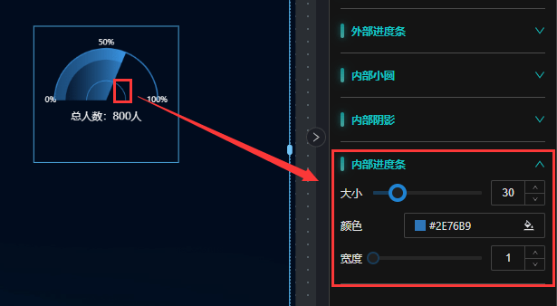 - 开启:显示指针指示当前数值,开启后可配置指针颜色及长度和粗细