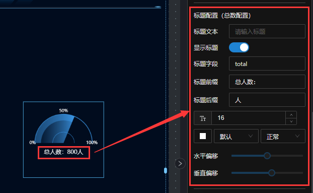 total,与“4、数据格式”中返回的字段对应 - 标题前缀:显示在标题值前的文本,例如: