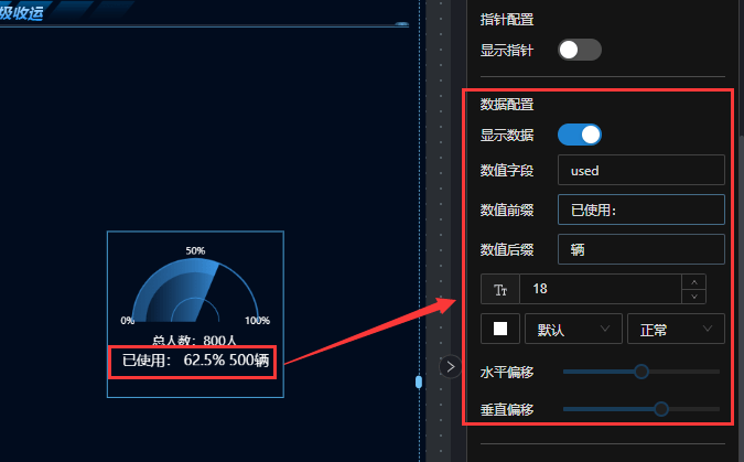 指标字号配置:与基础仪表盘属性一致,支持字体大小配置