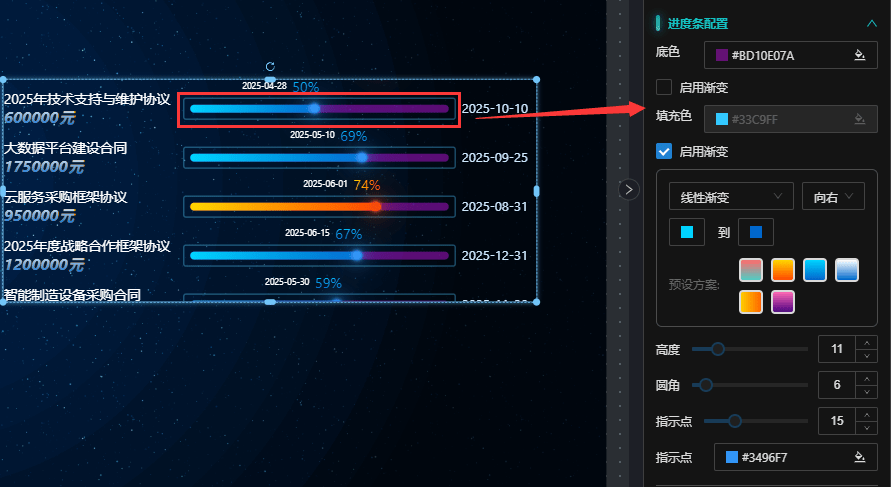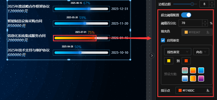 配置超出阈值的进度条显示样式