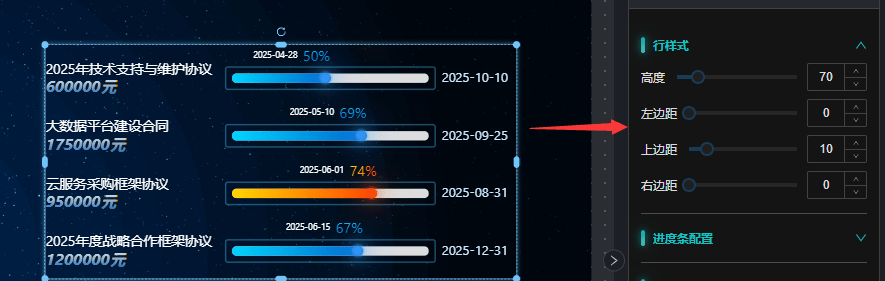 配置进度条之间的行高度,边距等