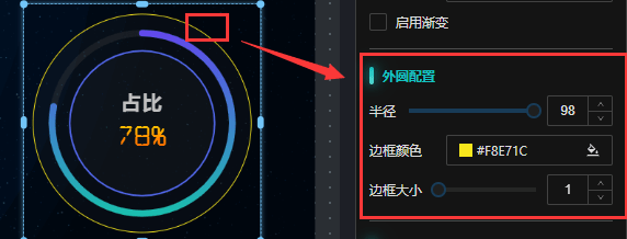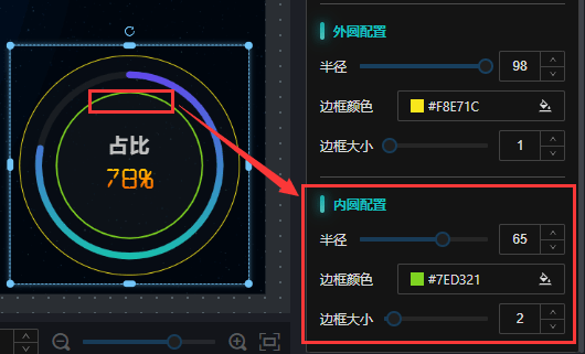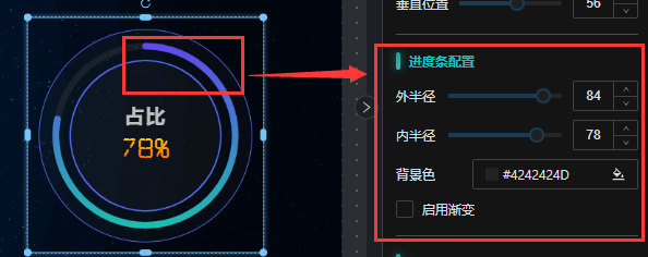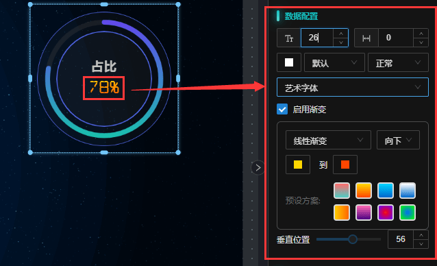 数值配置:可设置字体颜色、字体大小、数值显示位置属性配置,如本示例“50%”