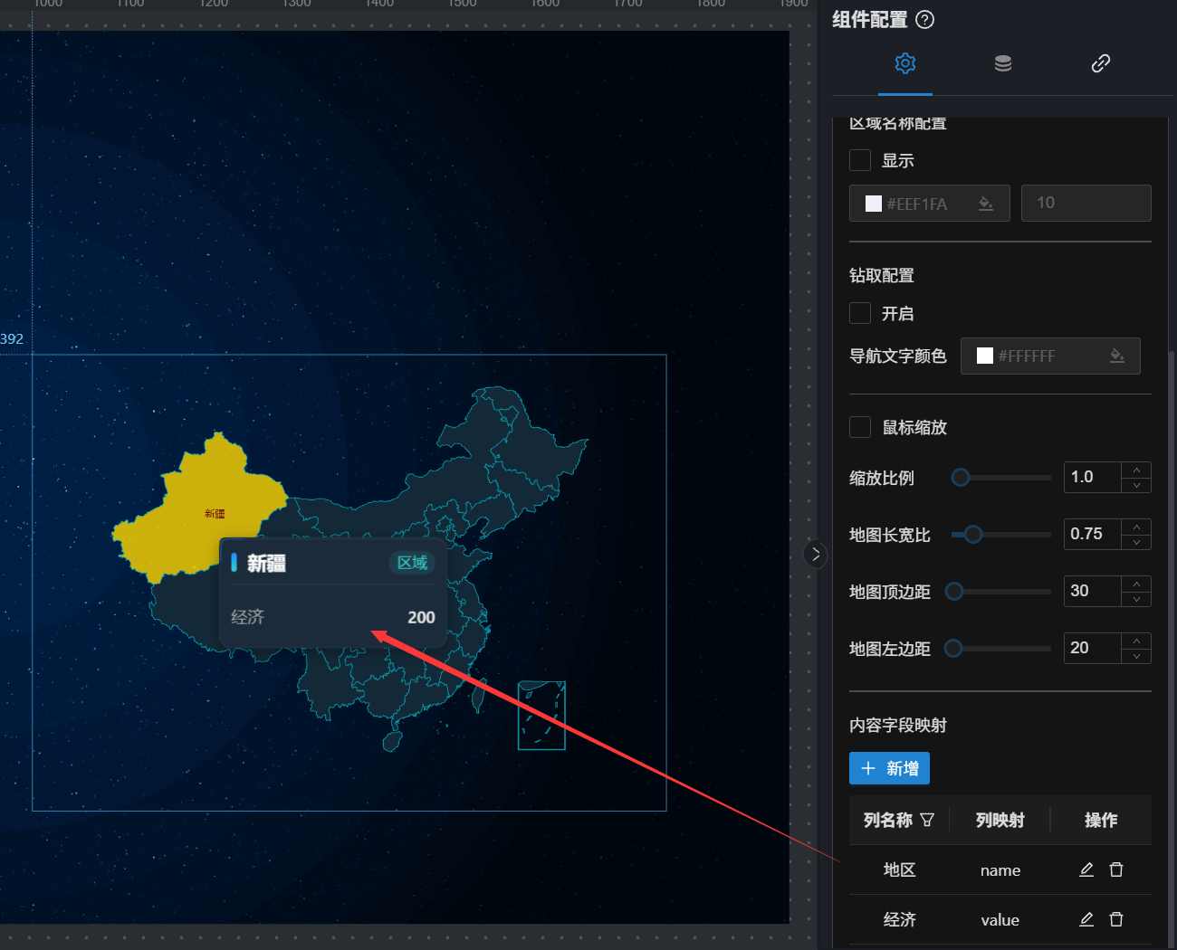 地图设置中的内容字段映射属性,来精确控制 Tooltip 中展示的内容。