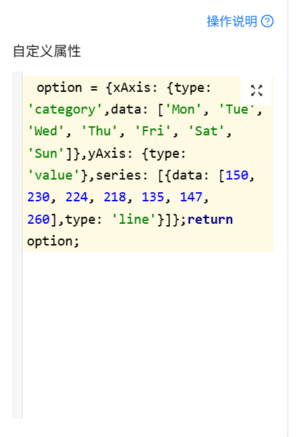 - 自定义属性:在高级设置中输入 ECharts 配置代码