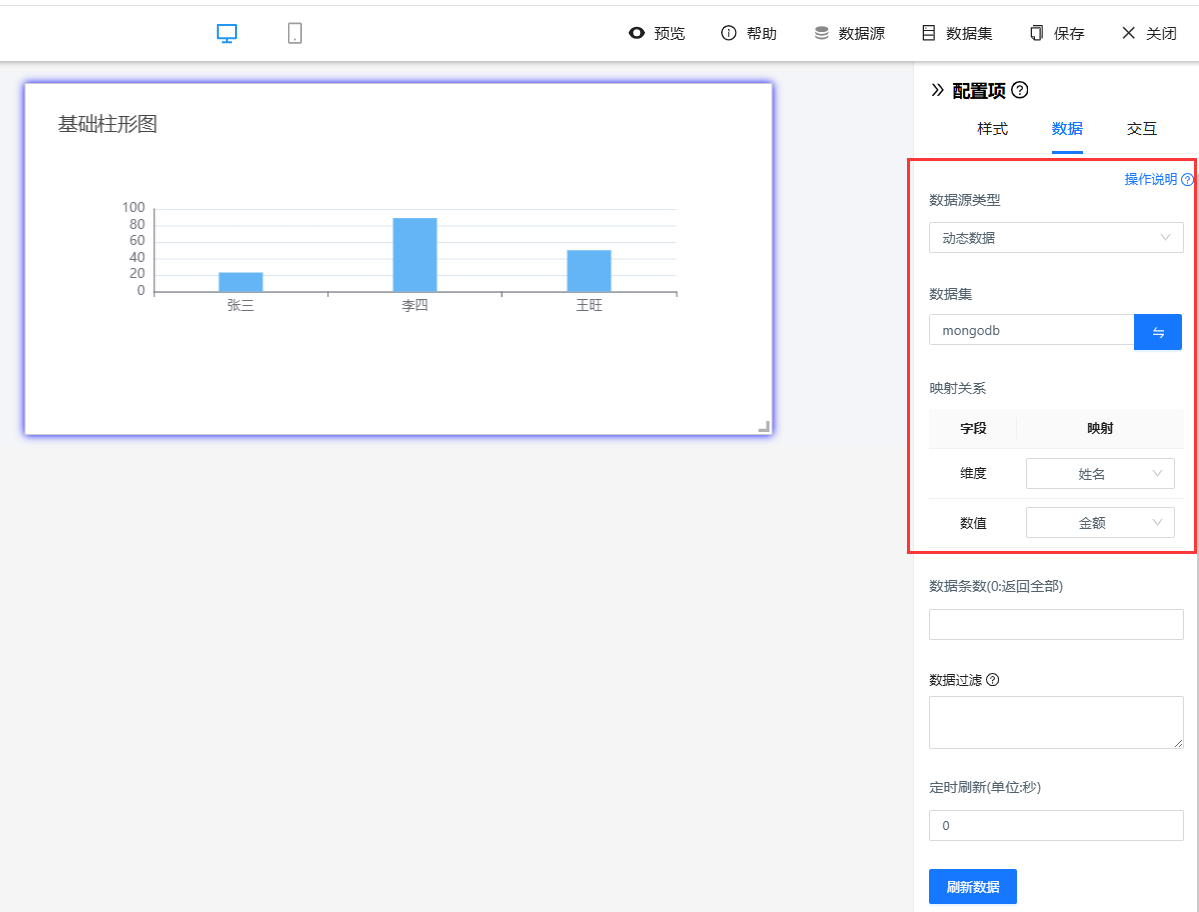 3.为图表配置mongodb数据集