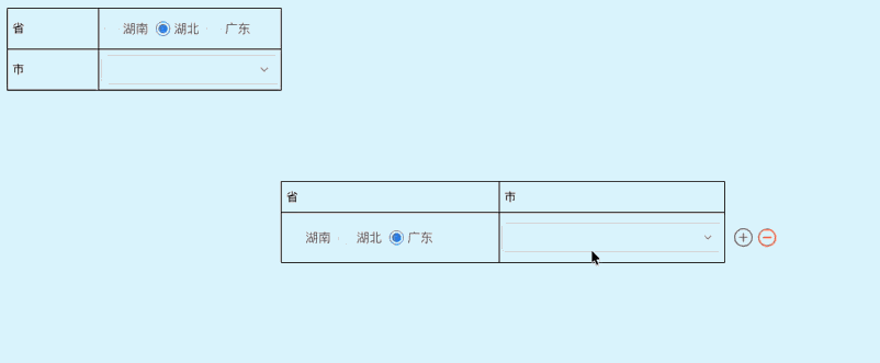 this.setSelectOptions('0.sub_city' + curRecordId, [{'label':'长沙市', value:'1'}, {'label':'株洲市', value:'2'}]);